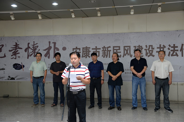 2017年8月24日,由中共安康市委宣傳部、 安康市文化文物廣電局、 安康市民風(fēng)辦主辦主辦,安康市群眾藝術(shù)館、安康書畫院承辦的抱素懷樸?安康市新民風(fēng)建設(shè)書法作品展在市群眾藝術(shù)館開展。中共安康市委宣傳部副部長(zhǎng)、市文聯(lián)黨組書記李康林,市文化文物廣電局黨組書記、局長(zhǎng)楊海波,市振興漢調(diào)二黃領(lǐng)導(dǎo)小組辦公室副主任王軍,安康日?qǐng)?bào)副總編輯曲勇,市群眾藝術(shù)館館長(zhǎng)周墻等相關(guān)領(lǐng)導(dǎo)出席了開幕式。   本次展出的118件書法作品,以書寫優(yōu)秀家風(fēng)家訓(xùn),歌頌安康新民風(fēng),弘揚(yáng)優(yōu)秀傳統(tǒng)美德和人文精神為主題,充分展示了具有安康特質(zhì)的優(yōu)良民風(fēng)和新時(shí)期安康人民共同的價(jià)值追求和文化自信。作品內(nèi)容豐富,具有其獨(dú)特的文化與藝術(shù)價(jià)值,將為我市新民風(fēng)建設(shè)增添一道靚麗的風(fēng)景。