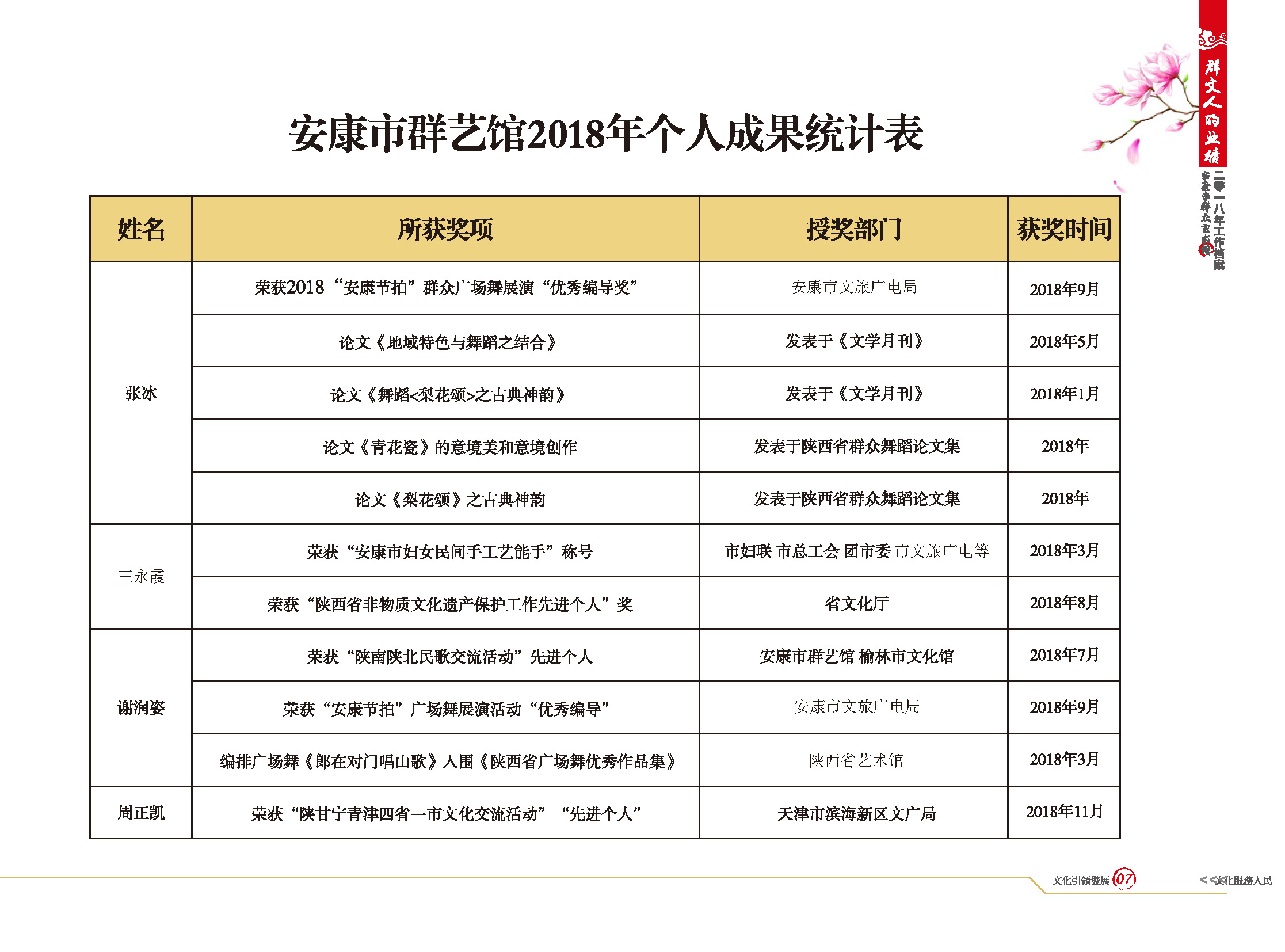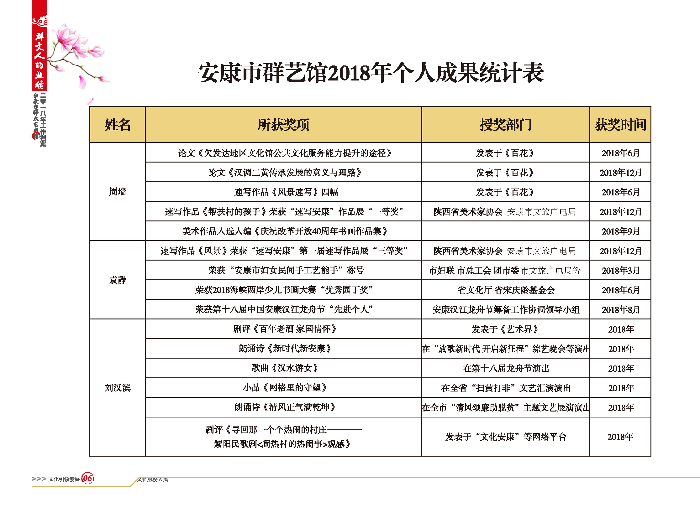 安康市群藝館2018年個(gè)人成果統(tǒng)計(jì)表