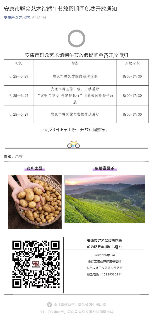 安康市群眾藝術(shù)館端午節(jié)放假期間免費(fèi)開(kāi)放通知