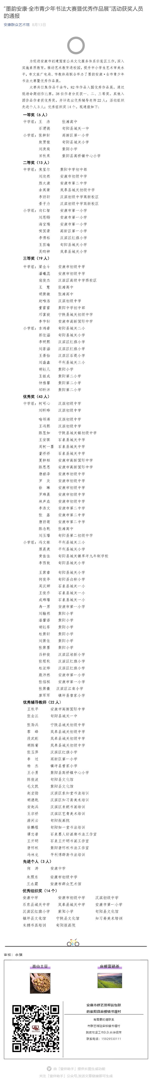 “墨韻安康·全市青少年書法大賽暨優(yōu)秀作品展”活動(dòng)獲獎(jiǎng)人員的通報(bào)