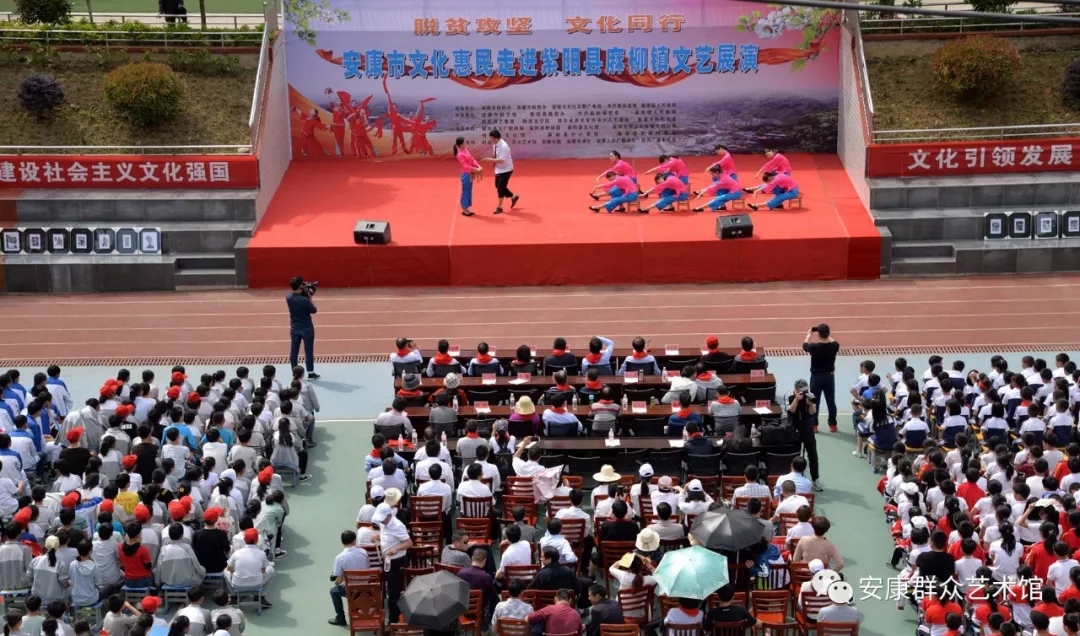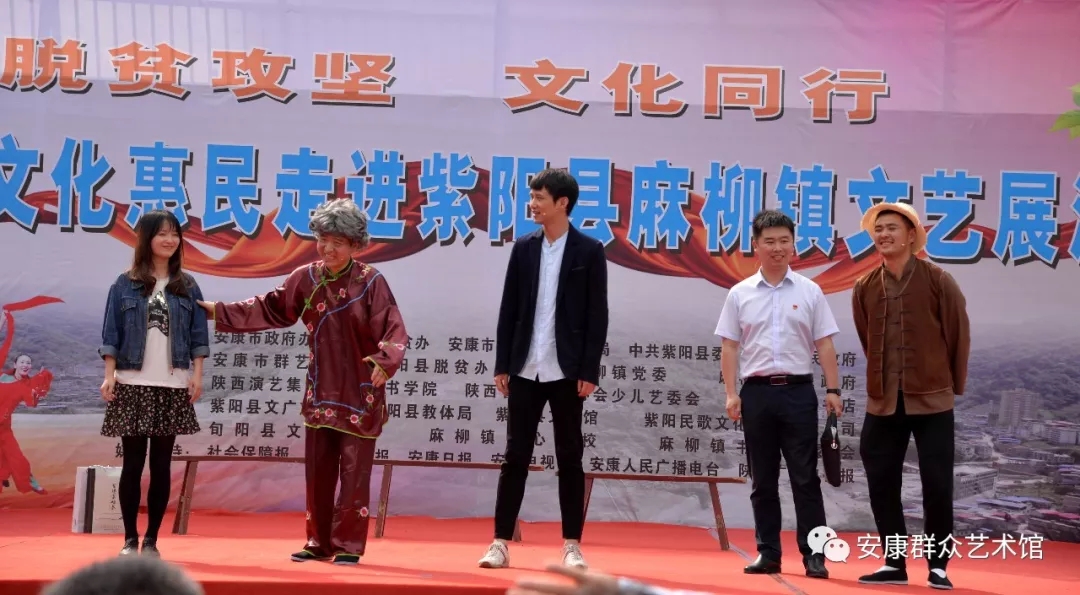 2018年4月27日,由市群藝館、紫陽(yáng)縣脫貧辦、中共麻柳鎮(zhèn)黨委、政府聯(lián)合主辦、陜西演藝集團(tuán)、陜西書(shū)學(xué)院、陜西省美術(shù)家協(xié)會(huì)少兒藝委會(huì)、安康市新華書(shū)店、紫陽(yáng)縣文廣旅游局、紫陽(yáng)縣教體局、紫陽(yáng)縣文化館、紫陽(yáng)縣民歌文化傳播有限公司、旬陽(yáng)縣文化館、麻柳鎮(zhèn)中心學(xué)校、麻柳鎮(zhèn)書(shū)堰村委會(huì)協(xié)辦的“脫貧攻堅(jiān)文化同行”文化惠民活動(dòng)在紫陽(yáng)縣麻柳鎮(zhèn)舉辦。