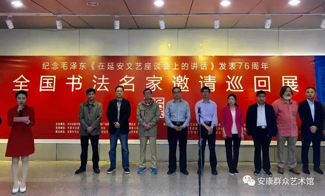 5月22日,為紀(jì)念毛澤東《在延安文藝座談會上的講話》發(fā)表76周年,中共安康市委宣傳部、安康市文化文物廣電局、安康市文學(xué)藝術(shù)界聯(lián)合會和陜西人民書畫院與安康市群眾藝術(shù)館舉辦“紀(jì)念毛澤東《在延安文藝座談會上的講話》發(fā)表76周年座談會暨全國書法名家邀請巡回展”。安康市政協(xié)副主席吳大康、安康市文化文物廣電局副局長王應(yīng)珍、中共安康市委宣傳部文改辦主任章濤、陜西人民書畫院院長衛(wèi)雙良、安康市書法家協(xié)會主席馬昌琪以及來自西安的著名書畫藝術(shù)家范長安、陳默、何炳武、張亞尼、方明、陳五季、司全福、張愛麗、韓麗、王仁貴、聶百川、張飛等來自安康市縣的書畫家、書法愛好者及各界群眾200余人參加了開幕式。